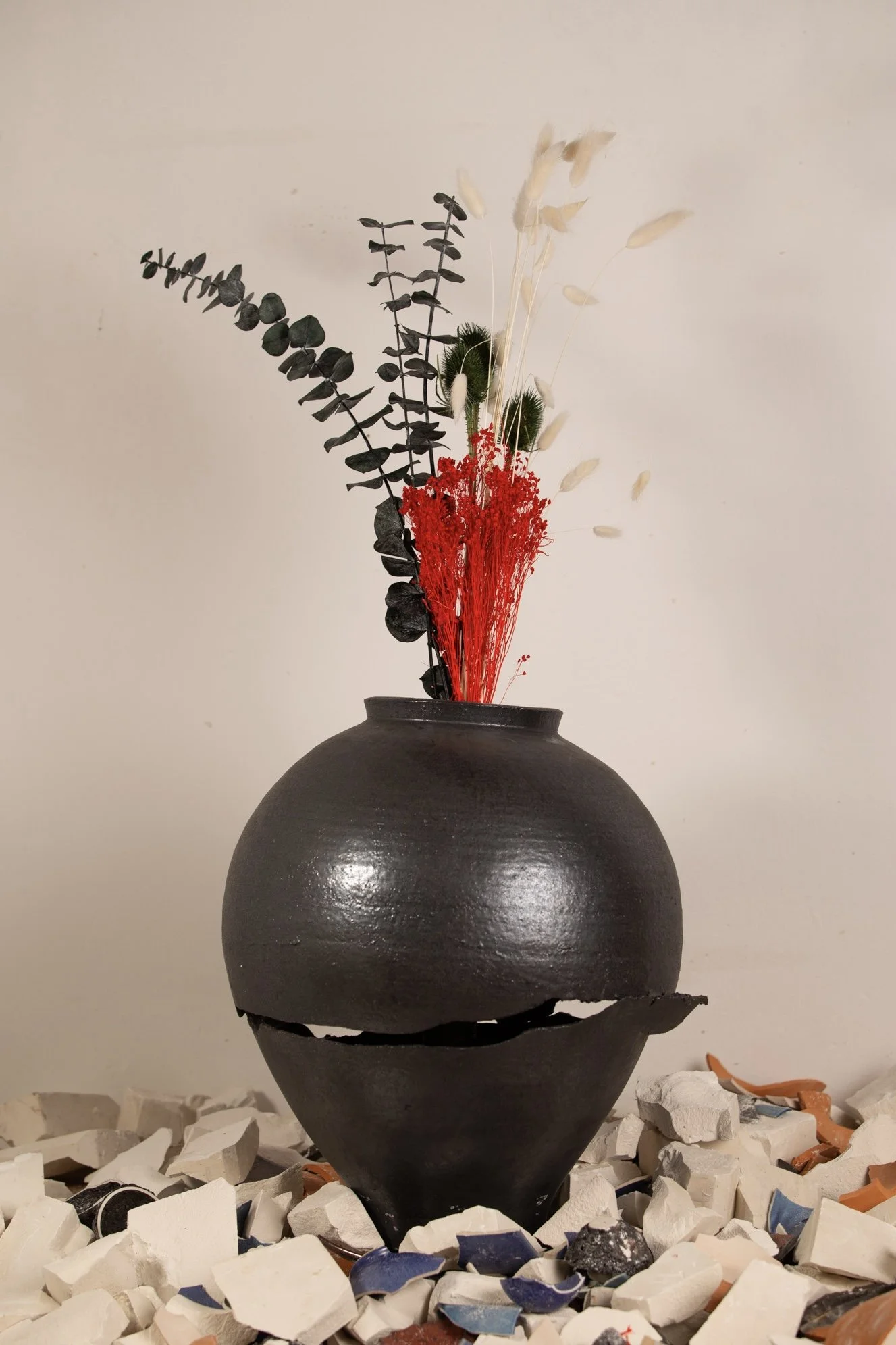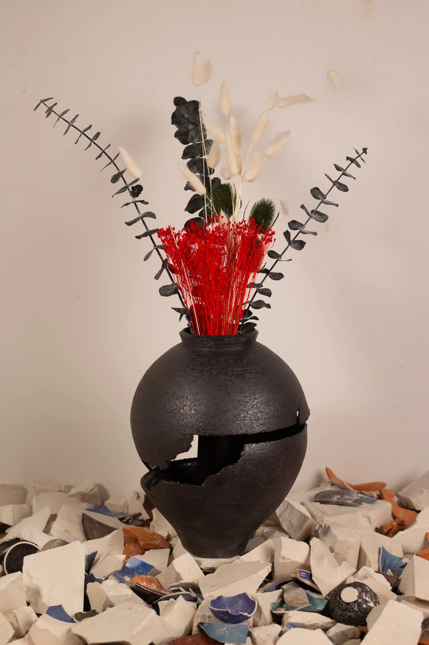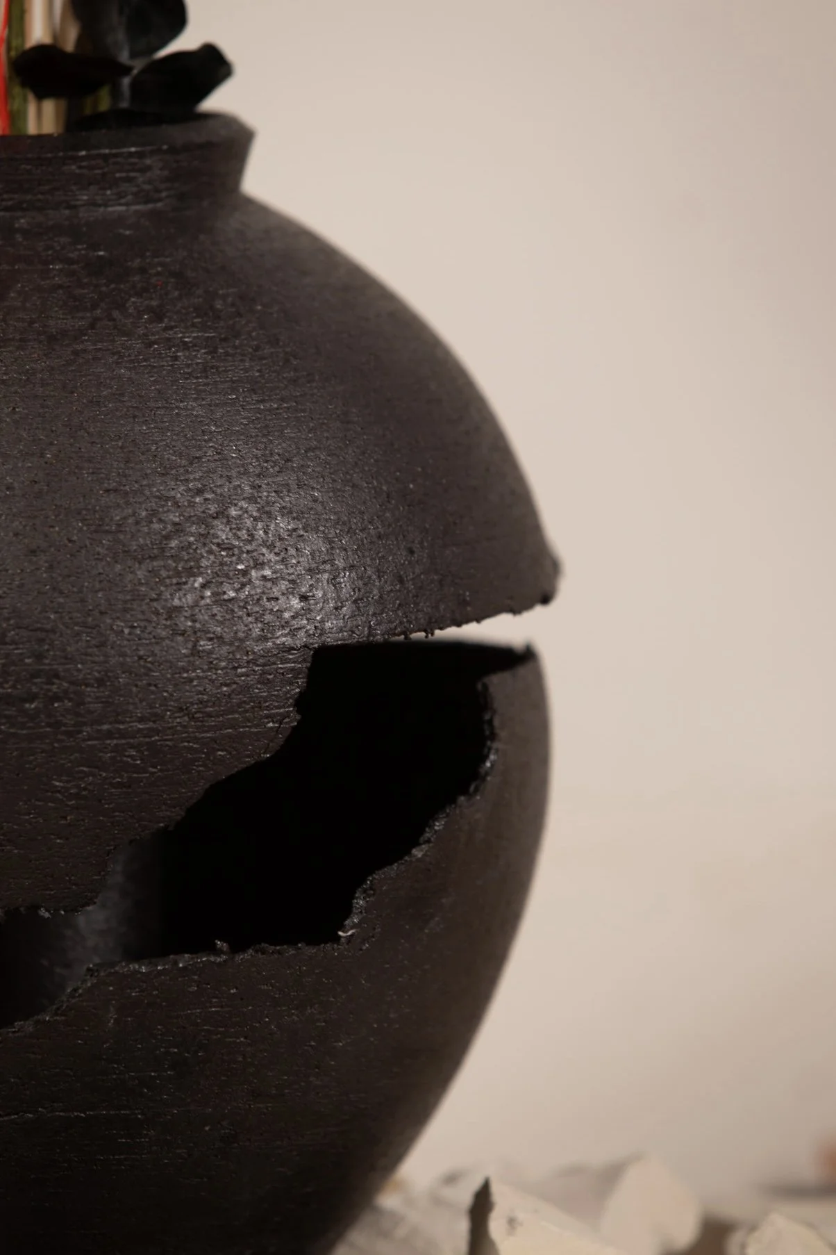 Mosso da questo sentimento, ho realizzato una serie di vasi che esprimono un senso di lacerazione, sofferenza e precarietà.